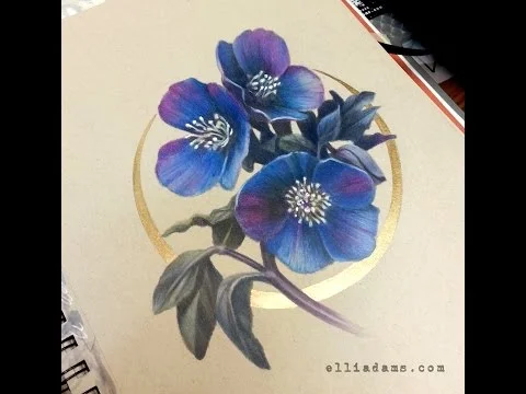 Black Hellebore Marker and Colored Pencil Drawing Timelapse
