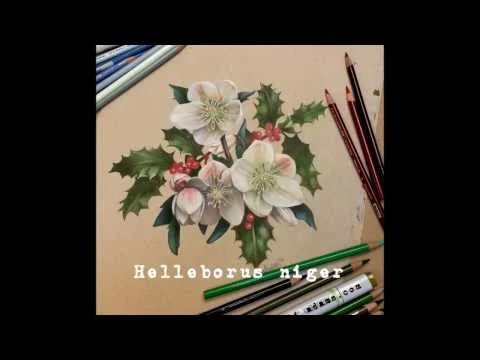 Christmas Rose Timelapse Drawing Colored Pencil and Marker